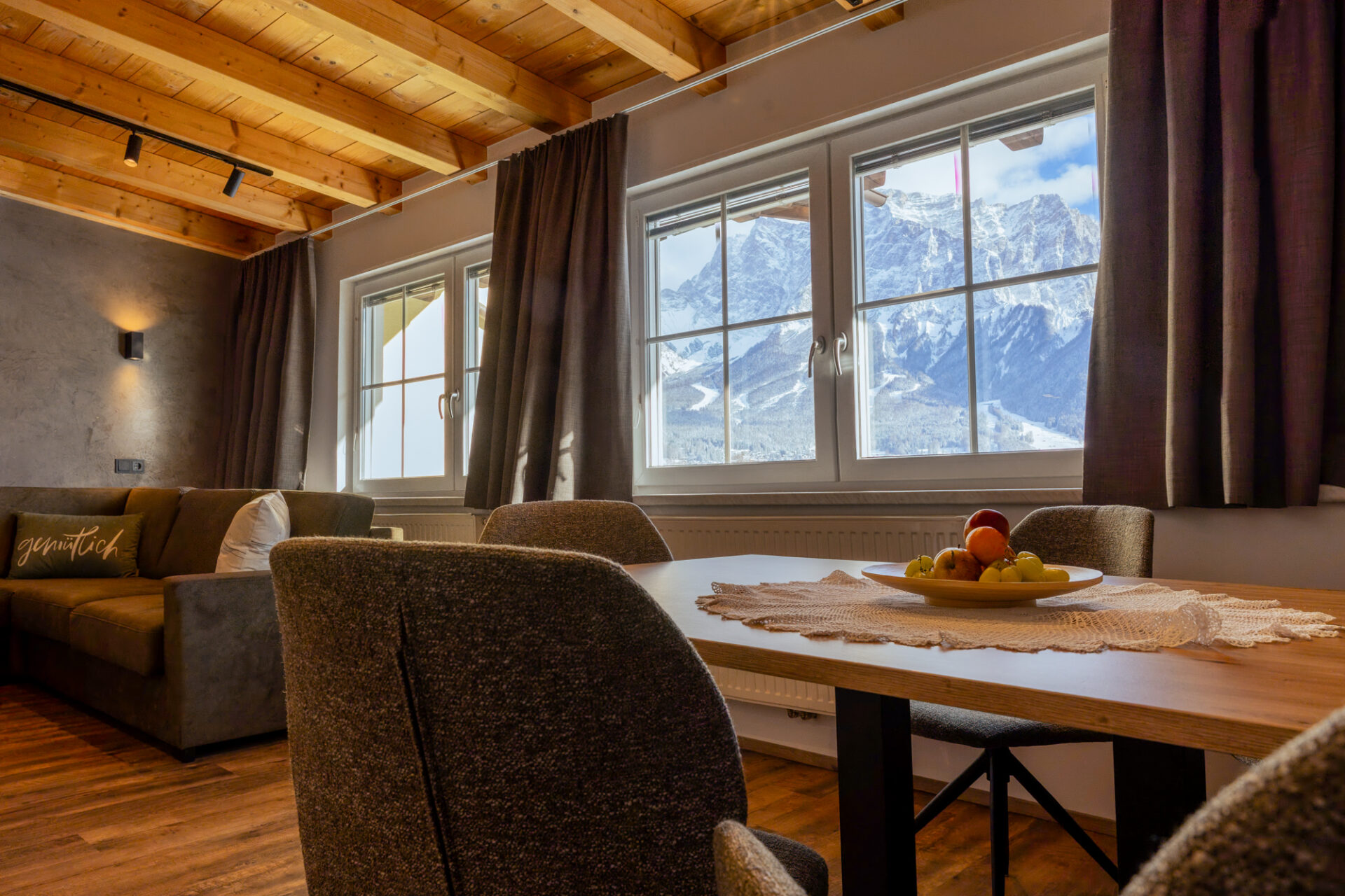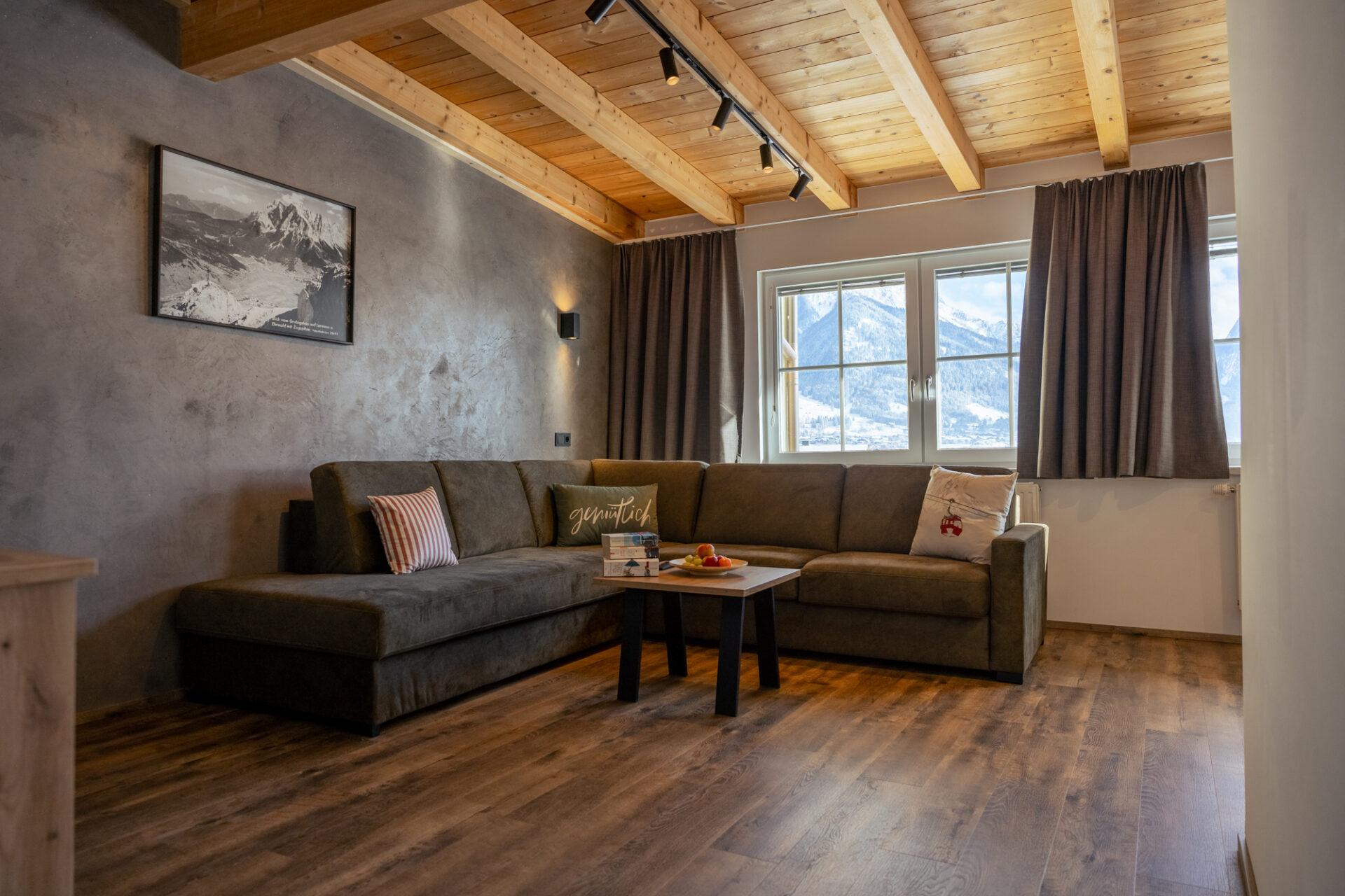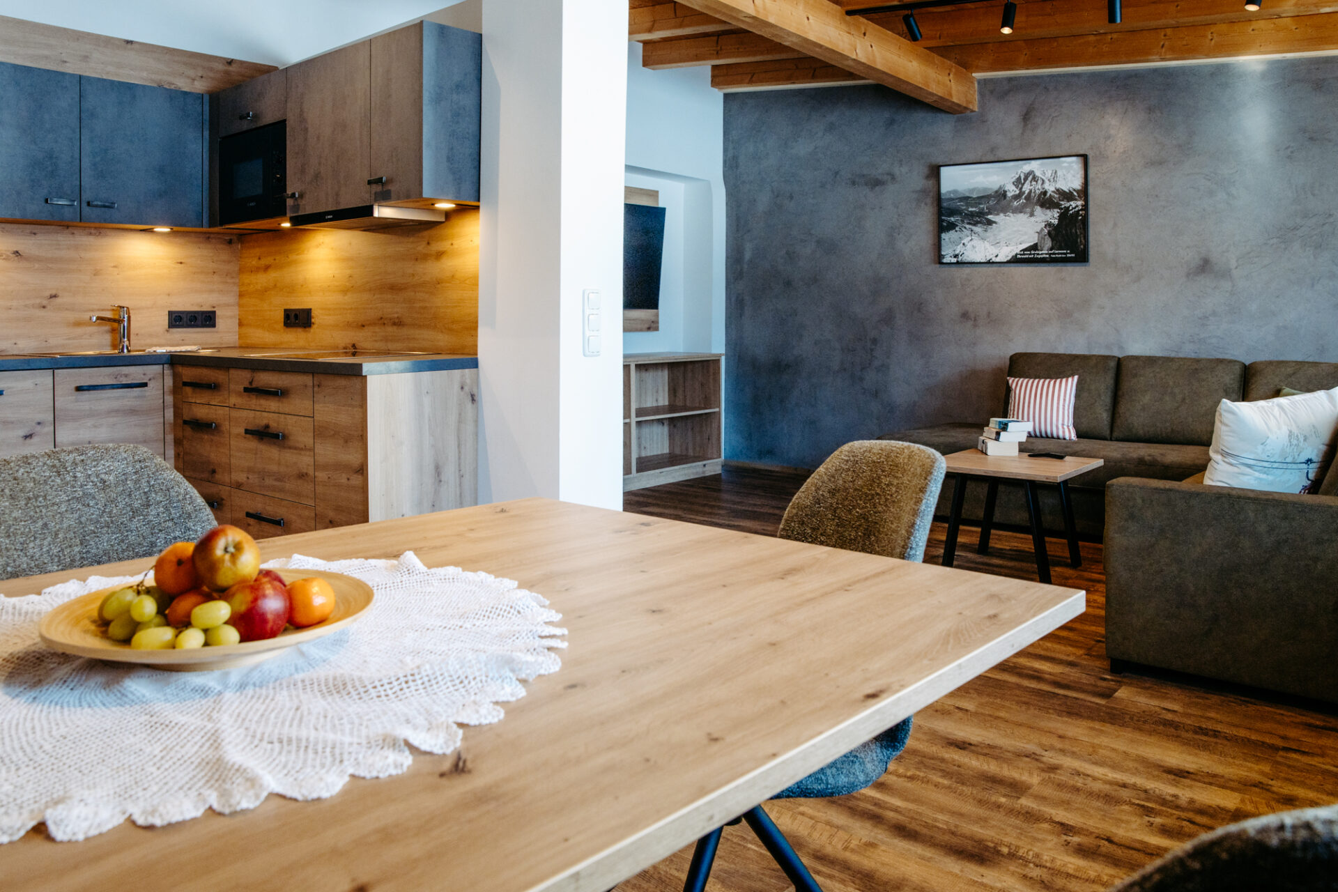 Alle unsere Ferienwohnungen sind im selben Stil, mit separaten Schlafzimmern (Dusche / WC pro Zimmer), Wohnzimmer mit kleiner Küche, Balkon mit Blick auf die zauberhafte Tiroler Bergwelt, einer gemütlichen Wohngarnitur (Sofa), Essecke, FLAT – TV, Haarfön, Mikrowellenherd, Kühlschrank, Kaffeemaschine, Wasserkocher, Spüle, Kochfeld, Toaster, Spülmaschine, Safe, Wireless – Lan und diversem Geschirr ausgestattet.